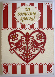 I have been asked for a tutorial for this project so here it is. INSTRUCTIONS TO MAKE AN EXPLOSION BOX 1) Using a 12’ x 12’ sheet of white Bazzill , score and fold 4” in from each end. 2) Using the fold lines as guides, cut the squares from the corners on 3 sides only. 3) On the last side, draw a pencil line 1/2 “in, cut this line to the corresponding fold line. 4) To decorate the outside of the box and using the eCraft and the Jen Allyson Designs Image card, Category 2, Frames, cut 4 x 4” Image 9 Frame 3 from black Bazzill. 5) Using the same design card and image, cut 4 X 3 ½”frames from white Bazzill. 6) From the same design card cut 4 x 3” frames from black glitter paper. 7) Using Jen Allyson Celebrates image card, Category 2, Weddings, cut 4 x 2 ½” red Bazzill and 4 x 2 ½” white Bazzill Scalloped Edge Heart Cut Outs. 8) ...